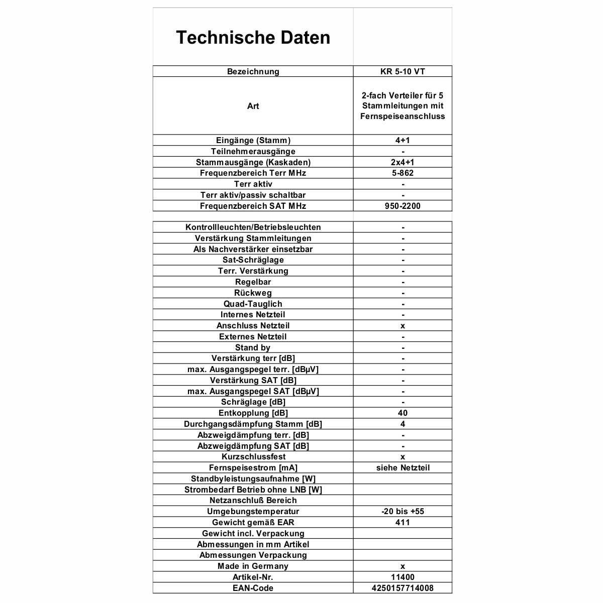 Einsetzbar für SAT-Verteilanlagen bei einer Satellitenposition in Verbindung mit Geräten der Serie III.